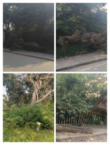 कॉलोनी में जगह-जगह विशालकाय वृक्ष वर्षोंसे टूट कर गिरे हुए है, और जा के तस पड़े हुए हैं, इसको हटाने की जिम्मेदारी आखिर किसकी है।