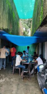 भोजन स्थल पर स्वच्छता का नामोनिशान नहीं है। स्वच्छ जल की कोई व्यवस्था नहीं — ड्रम में जो पानी आता है, वही पीने को मजबूर हैं श्रमिक। जगह की भी भारी कमी है। न भोजन बनाने के लिए पर्याप्त स्थान है, न बैठने की व्यवस्था। ऊपर से किसी प्रकार की स्थायी छत तक नहीं, पन्नी लगाकर छाया बनाई गई है, जिसके नीचे श्रमिकों को भोजन कराया जाता है।
